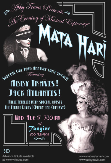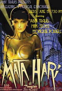 Kristian playing in Abby Travis' band and in Mink Stole's band at Abby's club "Mata Hari" at Club Tangier, 2138 Hillhurst Avenue, Los Feliz, L.A. 323-666-8666. Mink Stole is